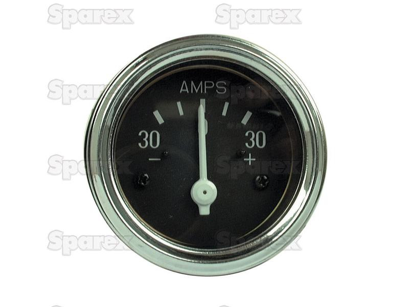 +/-30 Amp range. Backlit with bulb. Fits 2" hole. Screw terminals.